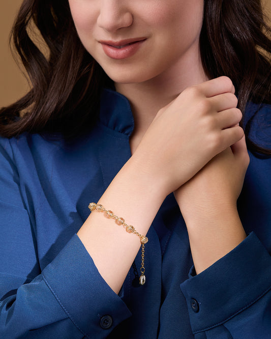 Pulsera En Tono Dorado Con Cuentas Pequeñas De Cristal Transparente Y Casquillas De Filigrana