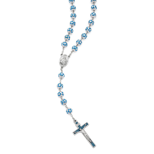 Rosario del Sagrado Corazón de Jesús con Cuentas de Color Plateado con Flores Azul Claro