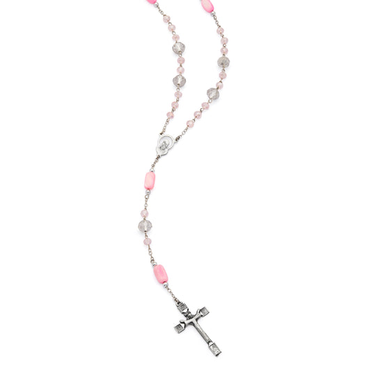 Rosario Escapulario con Cuentas de Cristal Rosa Claro y Gris Ahumado