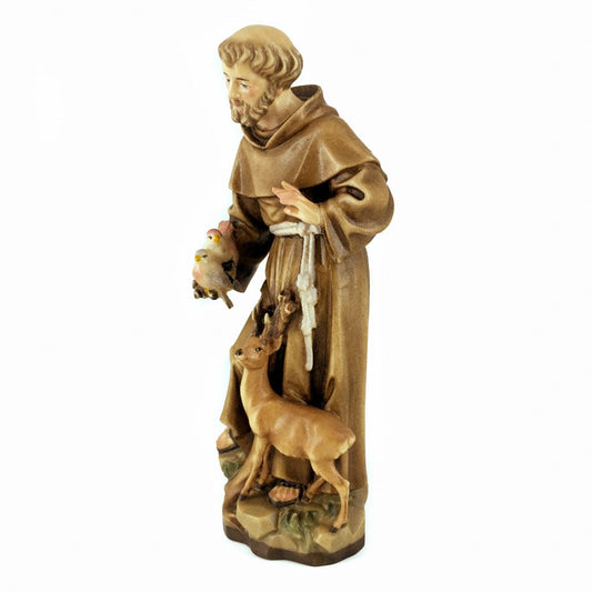 Estatua De Madera De San Francisco de Asís Con Cruz Y Animales