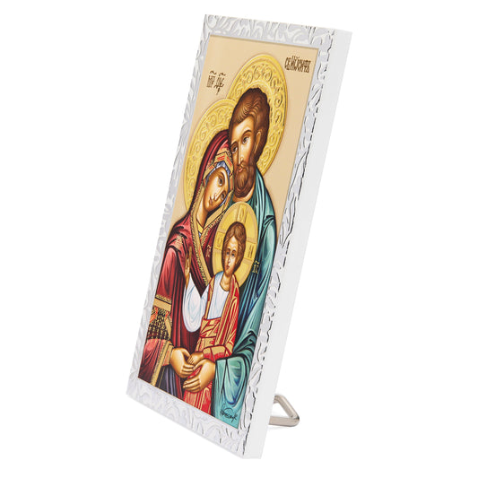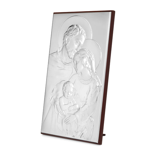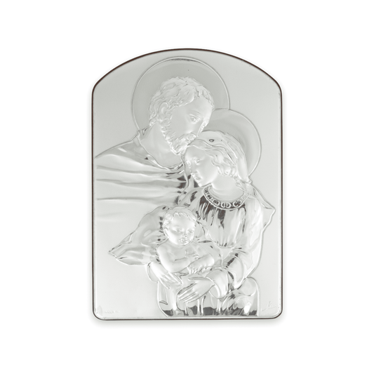 Cuadro Religioso Sagrada Familia Plata Bilaminada con Detalles Dorados