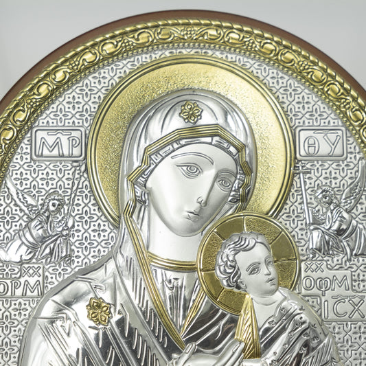 Panel De madera Con Detalles De Plata De Nuestra Señora de Kazán