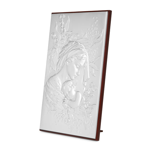 Cuadro Religioso Virgen y el Niño con Rosa en Plata Bilaminada