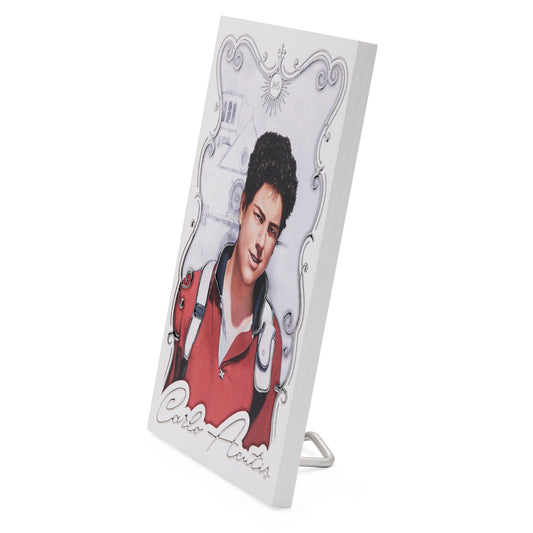 Panel De madera Con Detalles De Plata De San Carlo Acutis