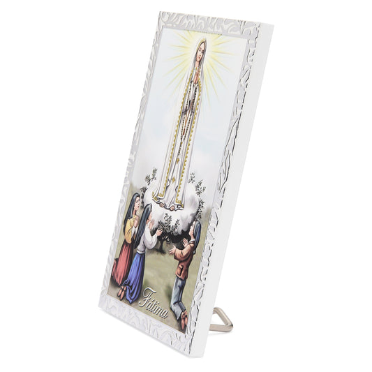 Panel De madera Con Detalles De Plata De La Virgen de Fátima
