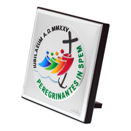 Panel De Madera Con Placa De Plata Con El Logotipo Del Jubileo 2025