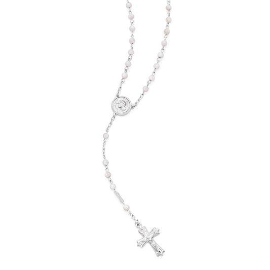 Collar Rosario De Plata Con Cuentas Rosa Claro
