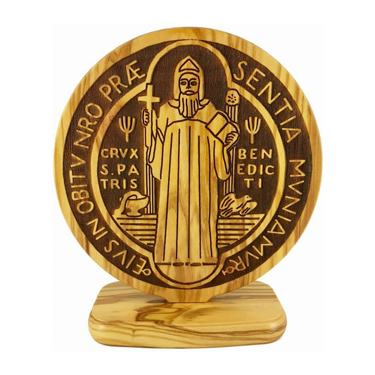 Medallón De San Benito De Mesa De Madera De Olivo