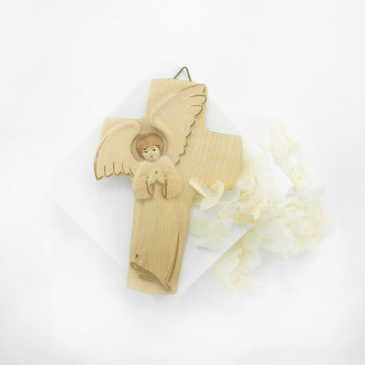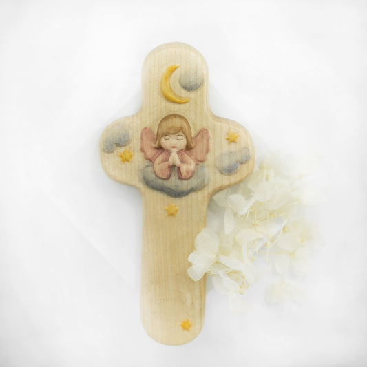Cruz De Madera Pintada a Mano Con Ángel en La Noche