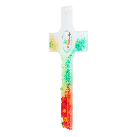 Crucifijo De Vidrio De Murano Del Jubileo 2025 Con Tonalidades Verdes, Rojas y Doradas