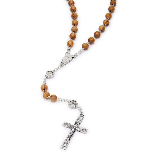 Rosario de Madera de Olivo con Medalla de San Benito Esmaltada como Pieza Central