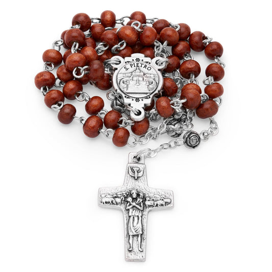 Rosario de Madera con Cuentas Redondas con las Cuatro Basílicas
