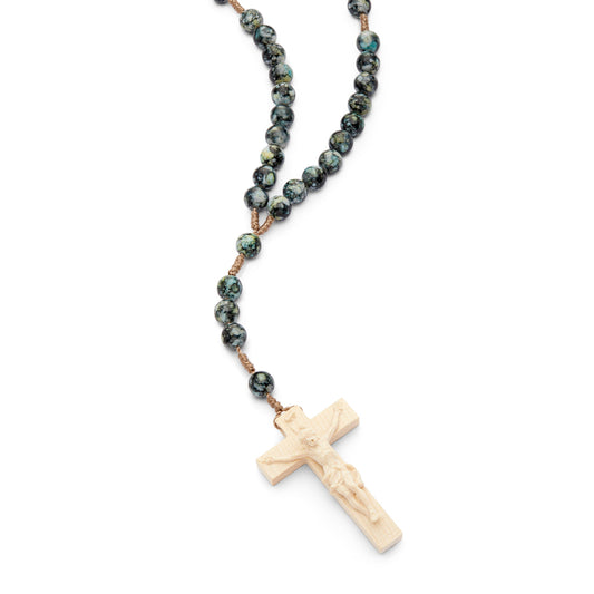 Rosario de Confirmación de Cuentas de Madera de Olivo y Medalla Central del Espíritu Santo