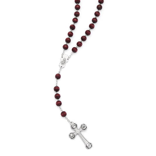 Rosario Artesanal De Madera Roja Con Crucifijo Colorido