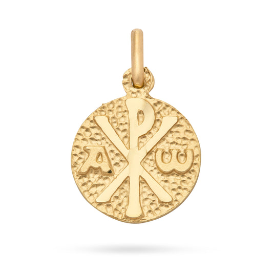 Medalla Chi Rho en Forma De Cruz De Oro Amarillo Con Papa Francisco en El Reverso