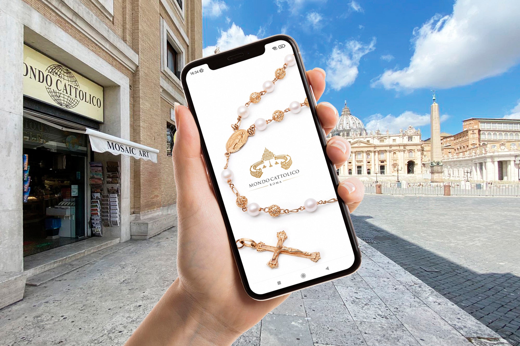 Con nuestra aplicación móvil gratuita para iPhone y Android tienes acceso a nuestro catálogo online para comprar directamente en nuestra tienda en Piazza San Pietro en Roma. ¡Descárgala y obtén acceso rápido y fácil a toda la colección de nuestros productos!