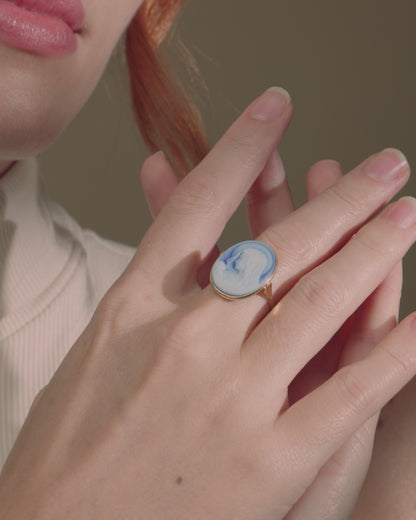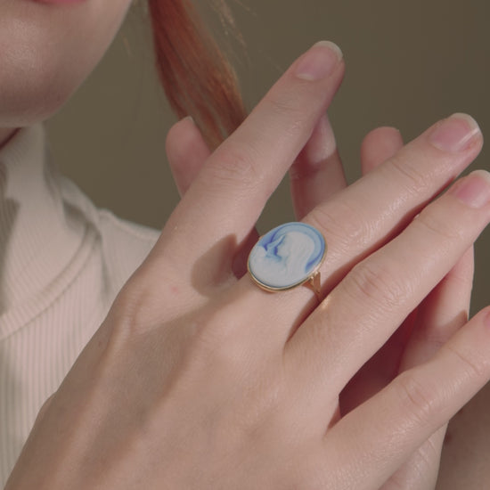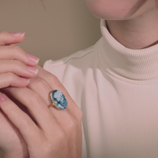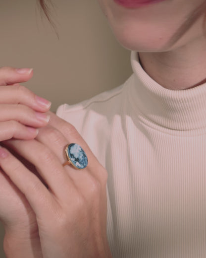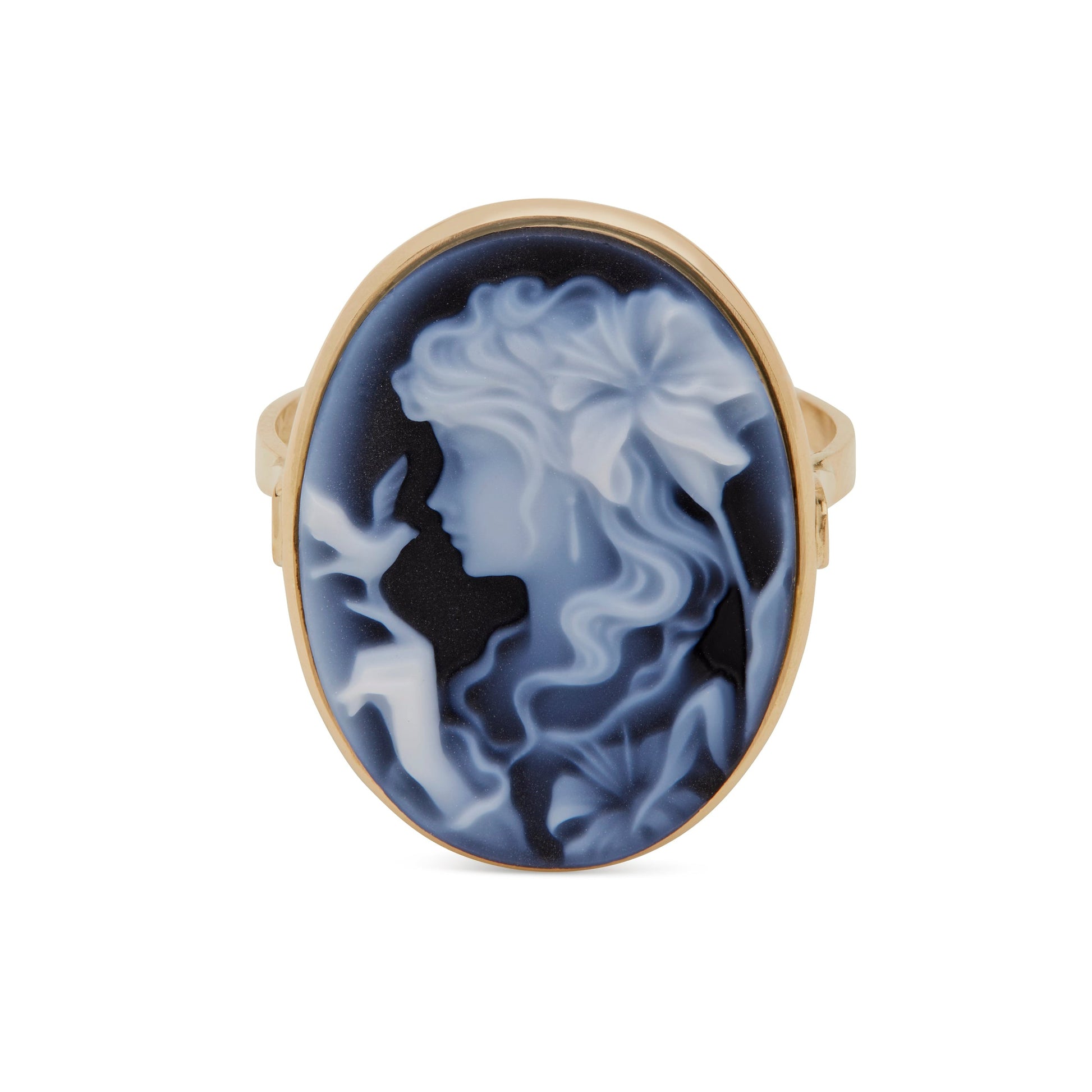 Anillo De Oro Amarillo Con Camafeo De Ágata Negra Que Representa a Una Mujer