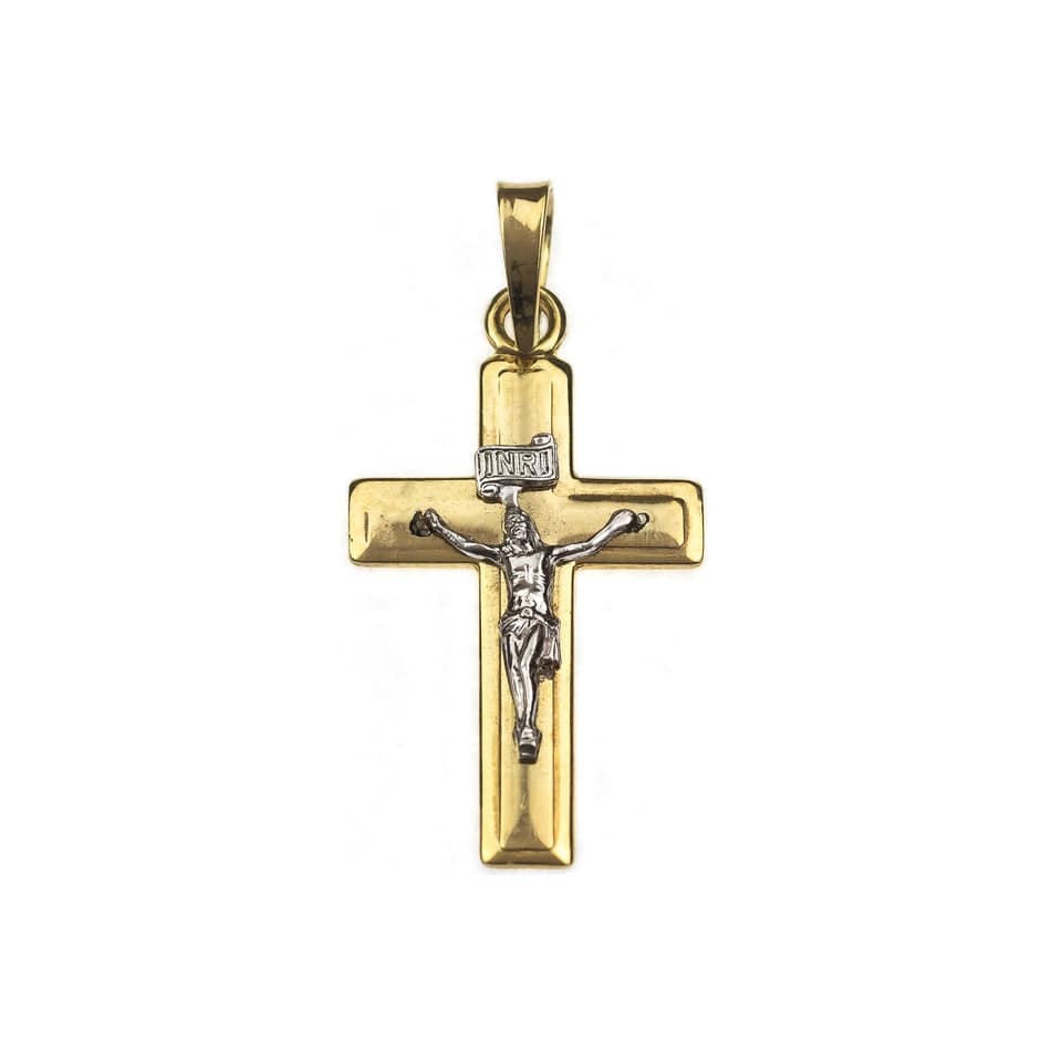 Colgante crucifijo de plata 925 chapada en oro 18 quilates, cuerpo de Jesus en plata.