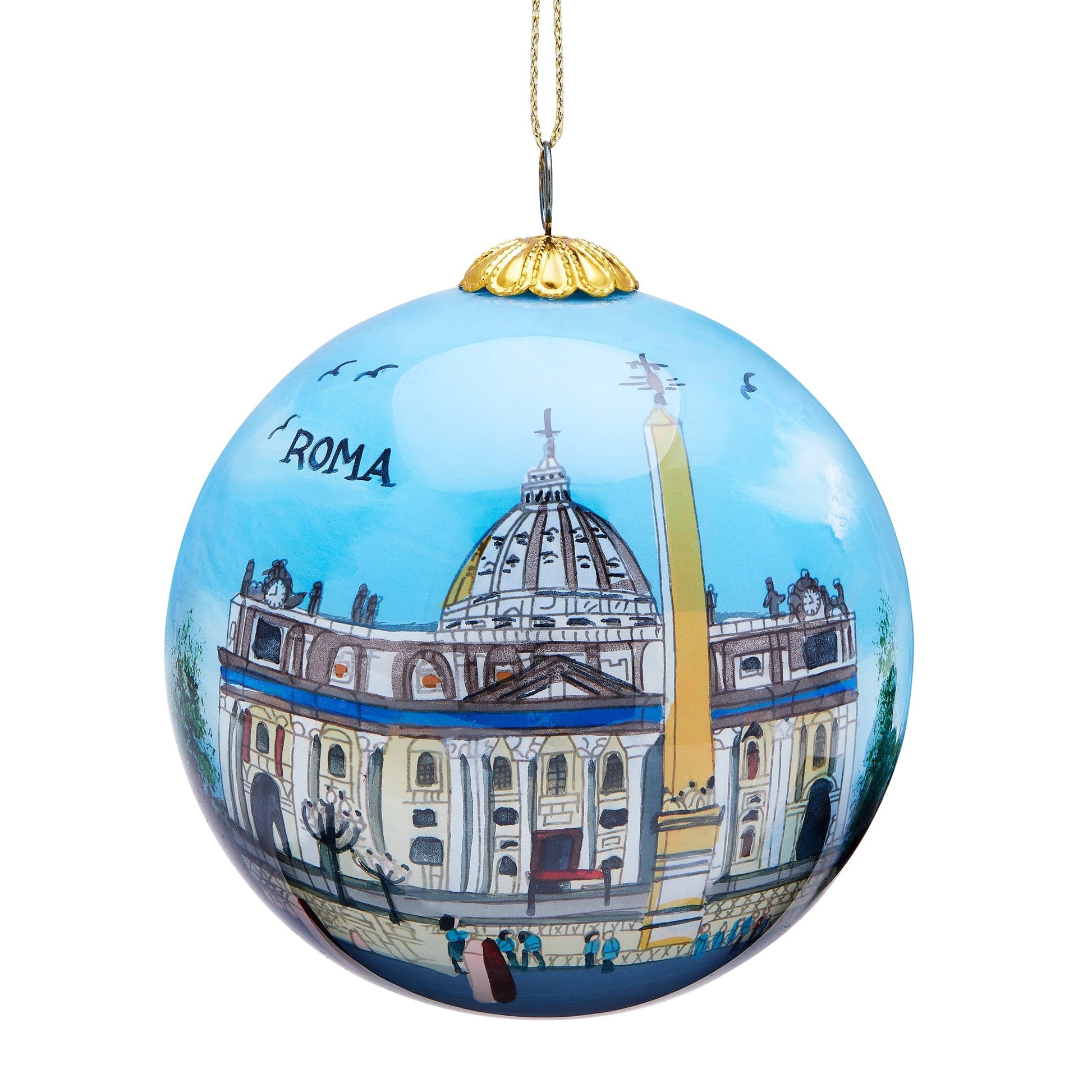 Bola de árbol de Navidad que representa la Basílica de San Pedro de día. Está hecha de vidrio soplado de Murano y pintada a mano.