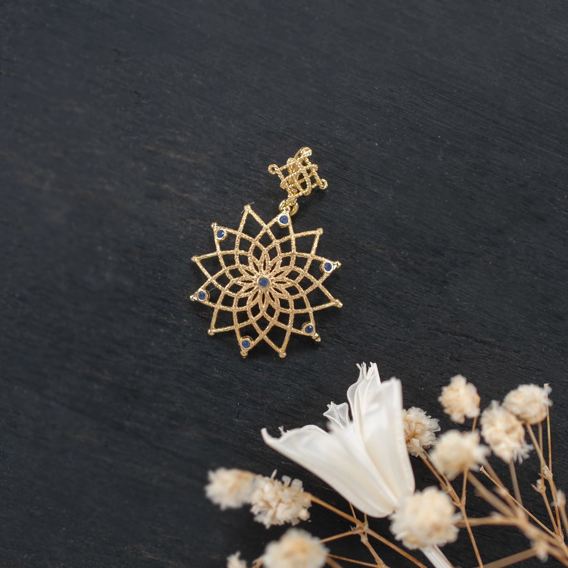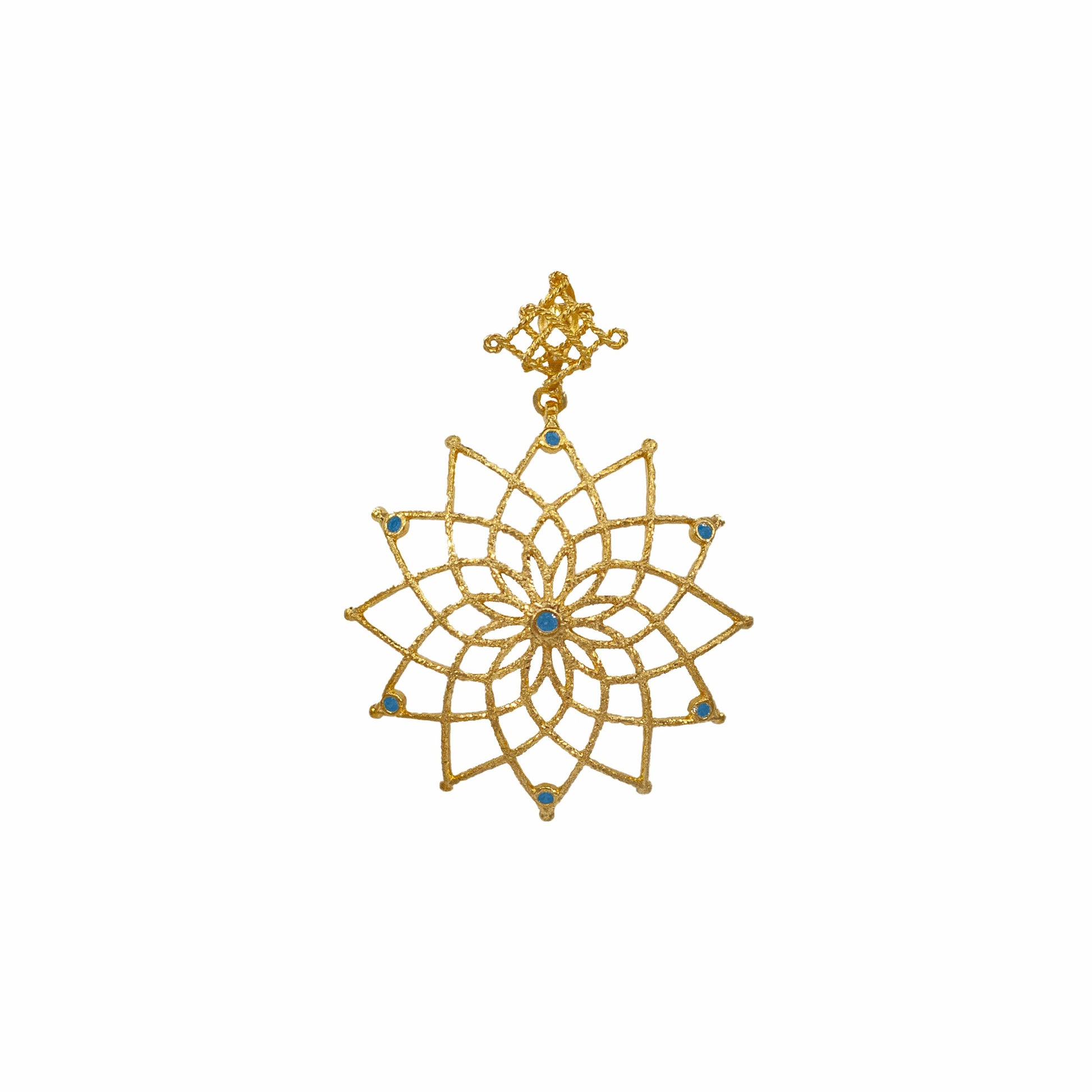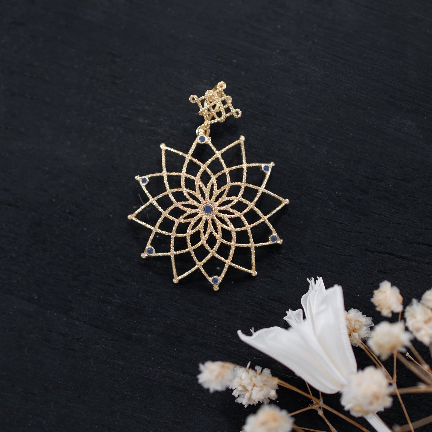 Pendiente Caput Mundi Baño de Oro Cristales Azules