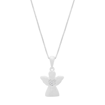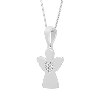 Colgante De Plata en Forma De Ángel Con Corazón Cubierto De Cristales Y Cadena
