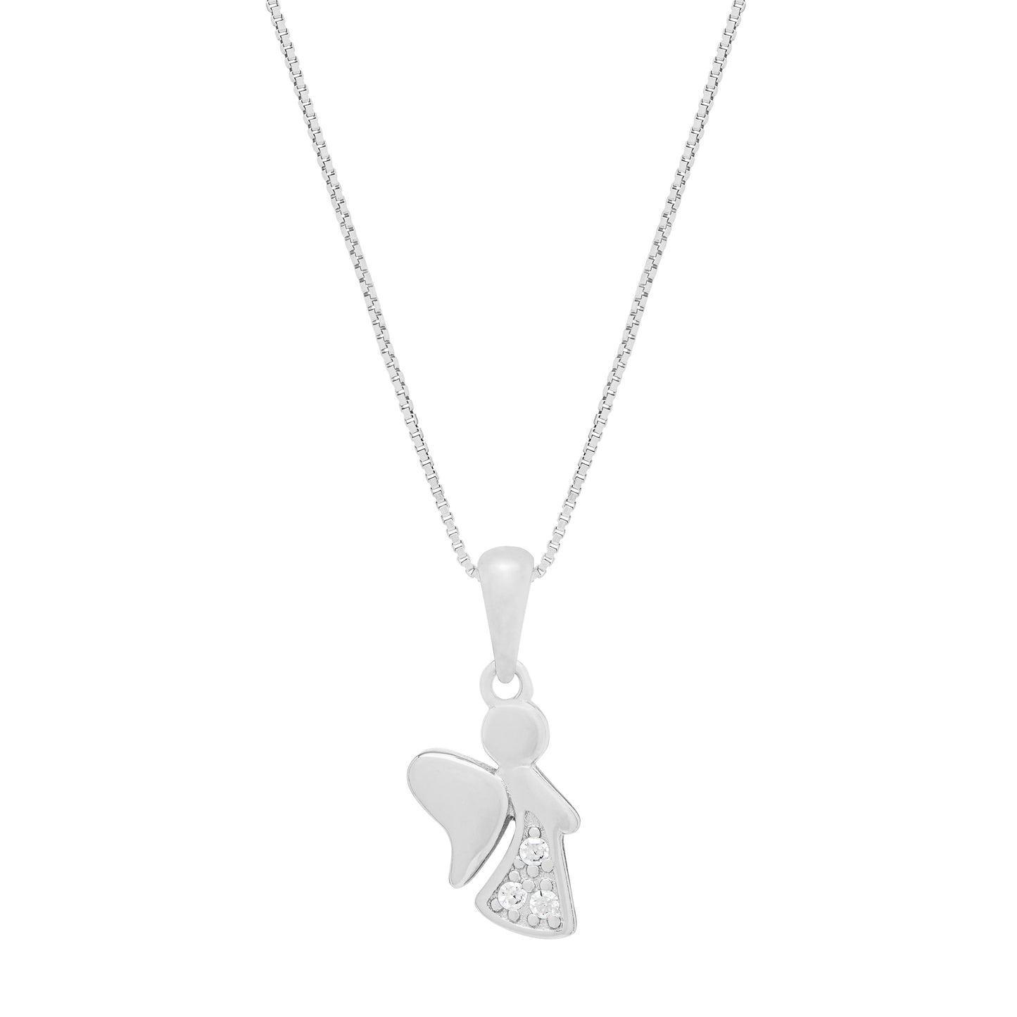 Colgante De Plata en Forma De Ángel De Perfil Con Cristales Y Cadena