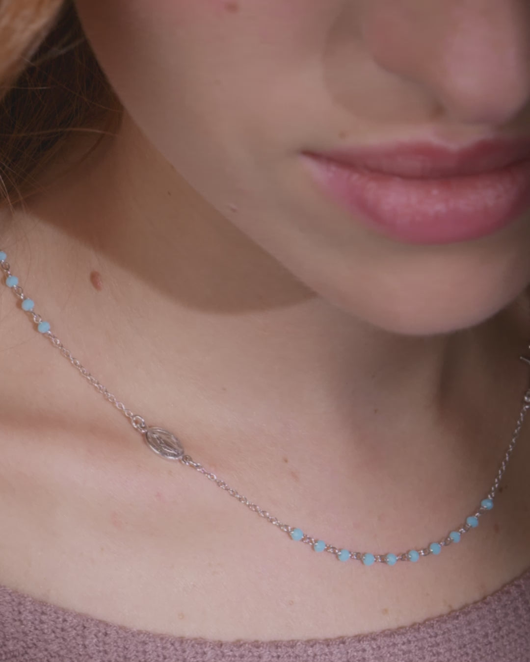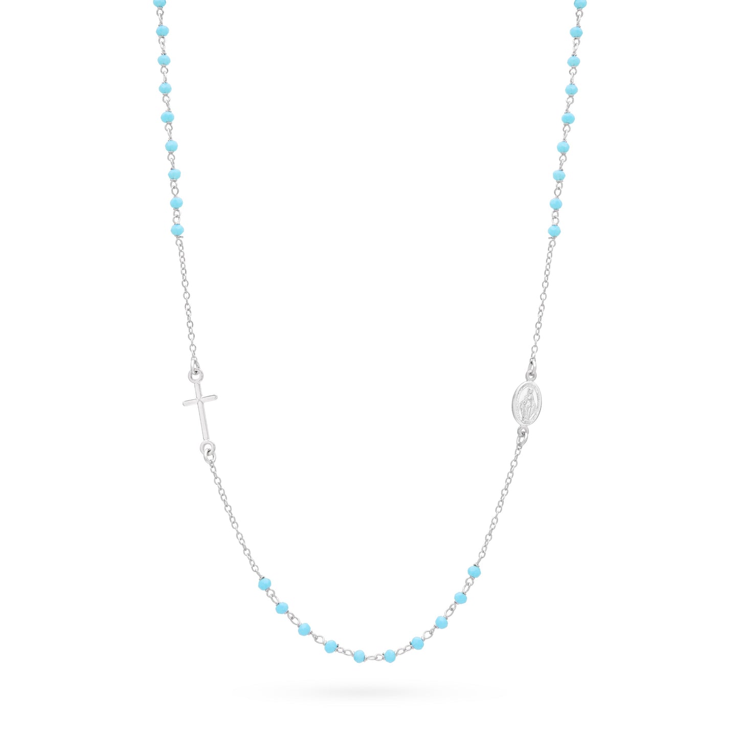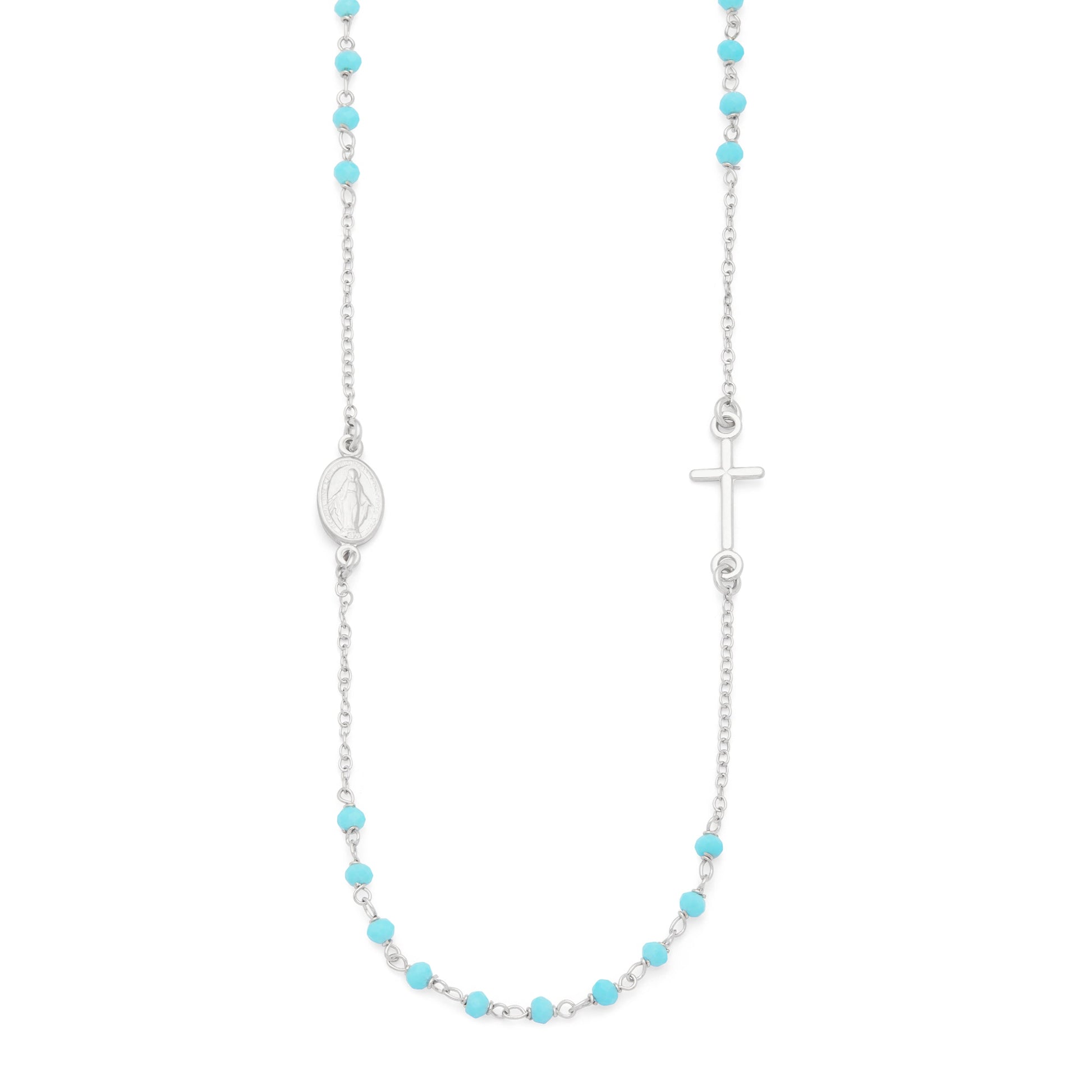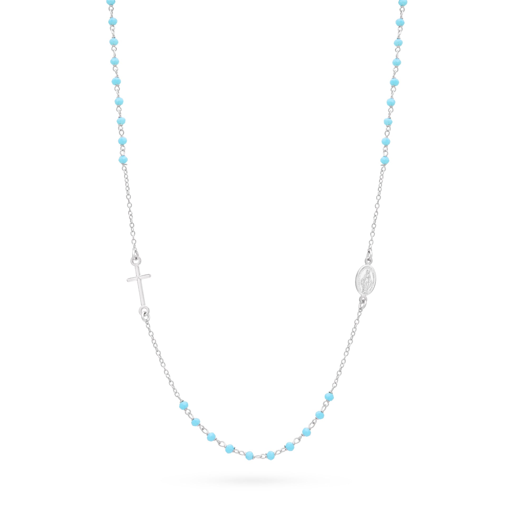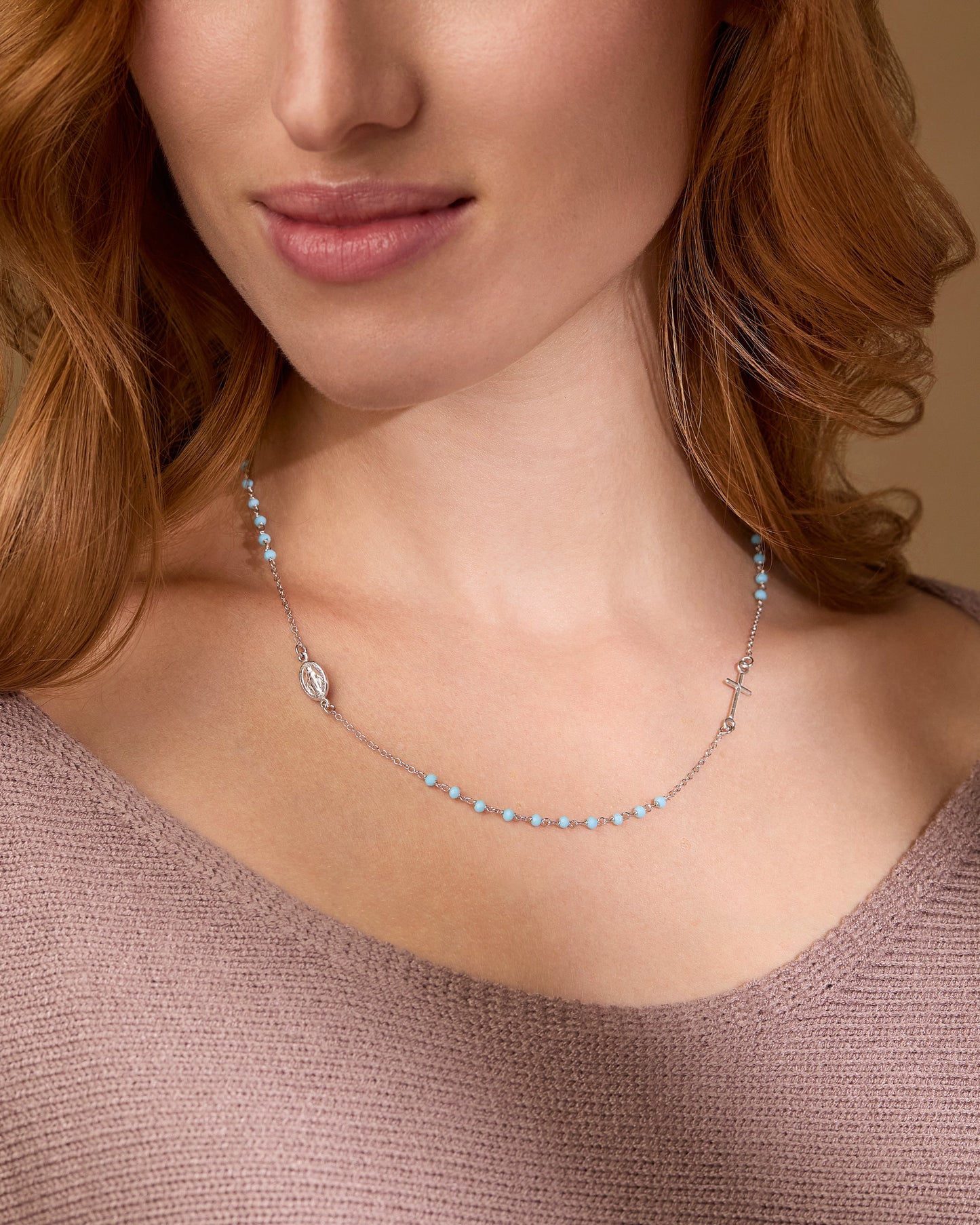 Collar Rosario De Plata Con Cuentas Azul Claro