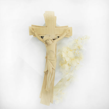 Espléndido Crucifijo Sinaí hecho a mano por escultores de Val Gardena, Trentino Alto Adige. La artesanía italiana ha resaltado la obra sagrada a través de la producción de los símbolos cristianos como el de la figura, llenos de valores religiosos.