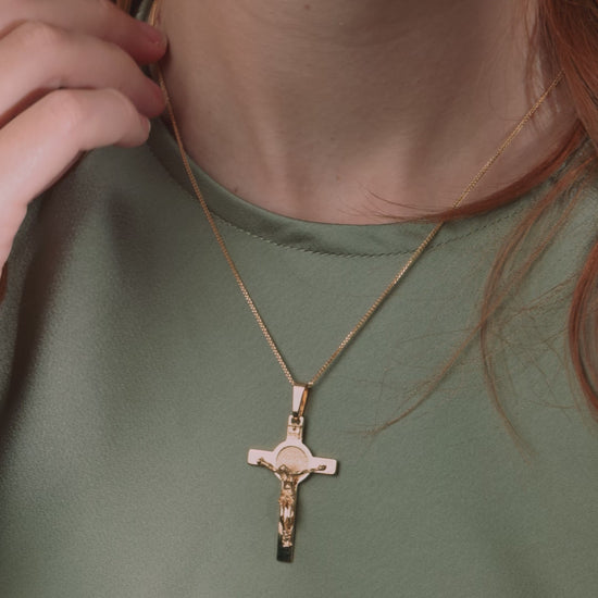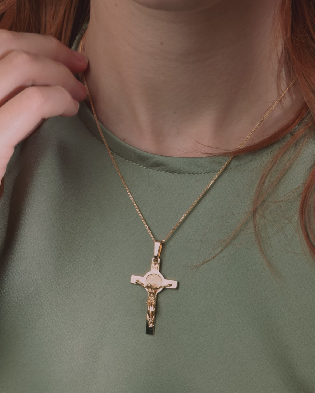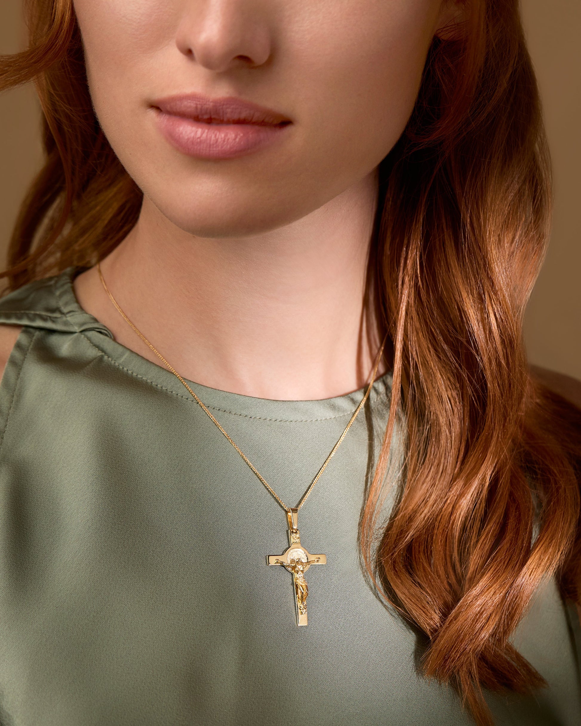 Crucifijo De San Benito Colgante De Oro Amarillo