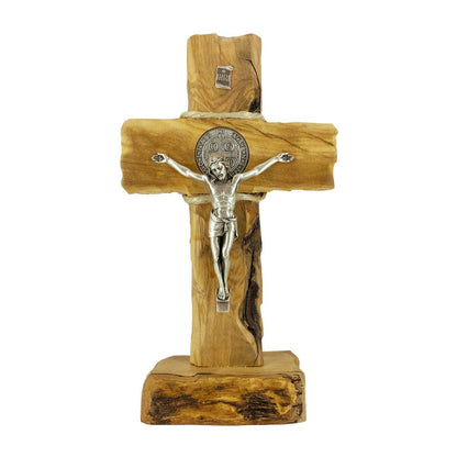 Crucifijo De San Benito De Mesa De Madera De Olivo en Bruto