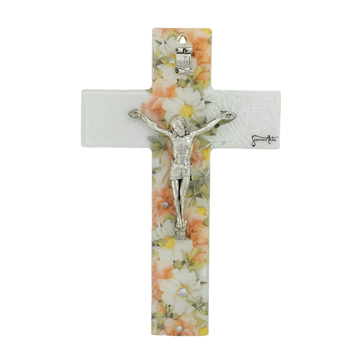 Crucifijo De Vidrio Veneciano Con Patrón Floral Central