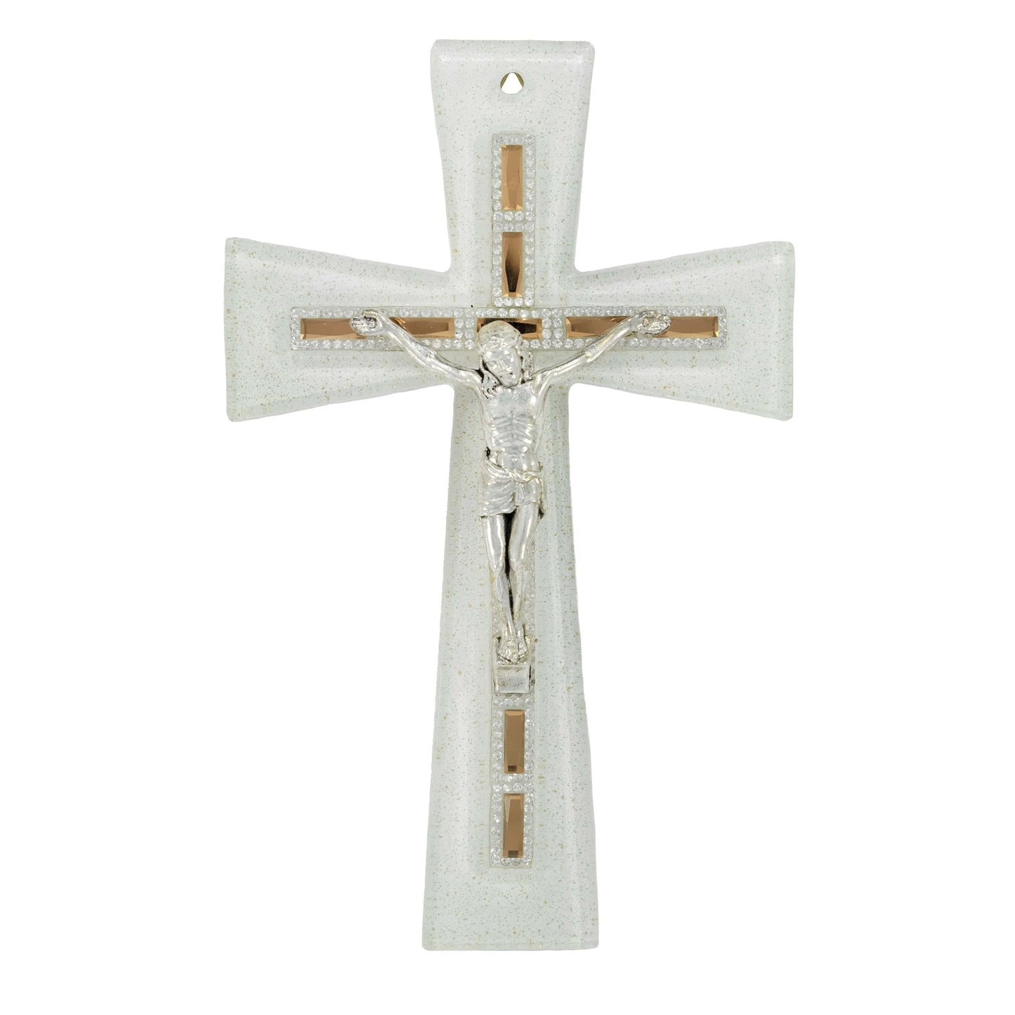 Crucifijo De Vidrio Veneciano Con Pedrería Blanca Y Marrón
