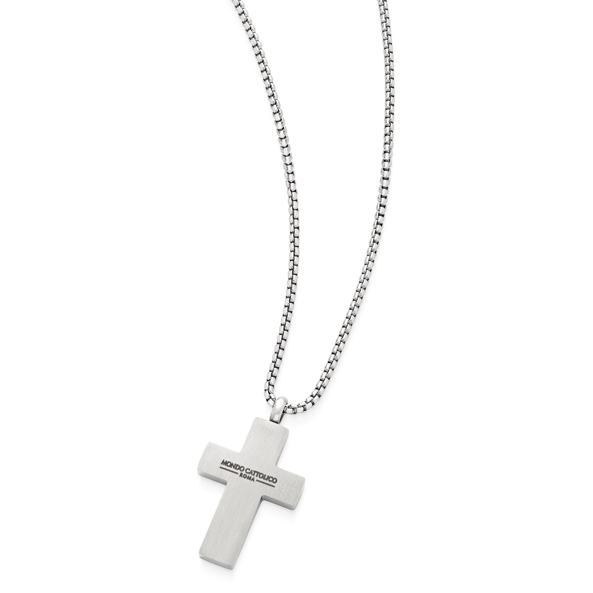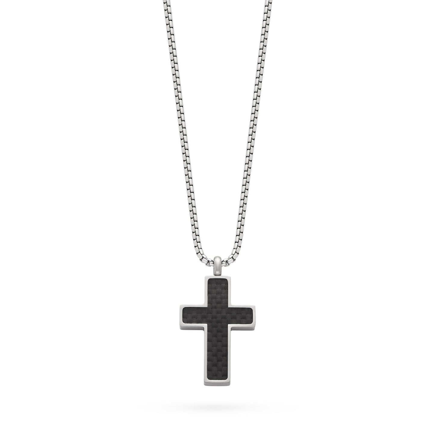 Cruz Colgante De Acero Inoxidable Con Textura Trenzada Negra Y Cadena
