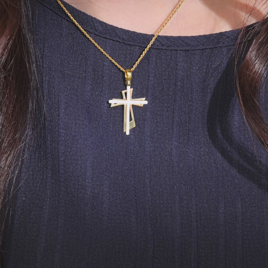 Cruz Colgante De Plata Con Doble Cruz De Plata Dorada