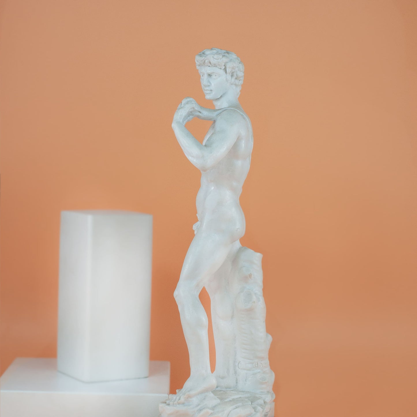Reproducción en polvo de mármol de la estatua del David de Miguel Ángel Buonarroti. Considerada una obra maestra de la escultura mundial, es uno de los emblemas del Renacimiento y un símbolo de Florencia e Italia en el extranjero. El original se conserva en la Galería de la Academia de Florencia.