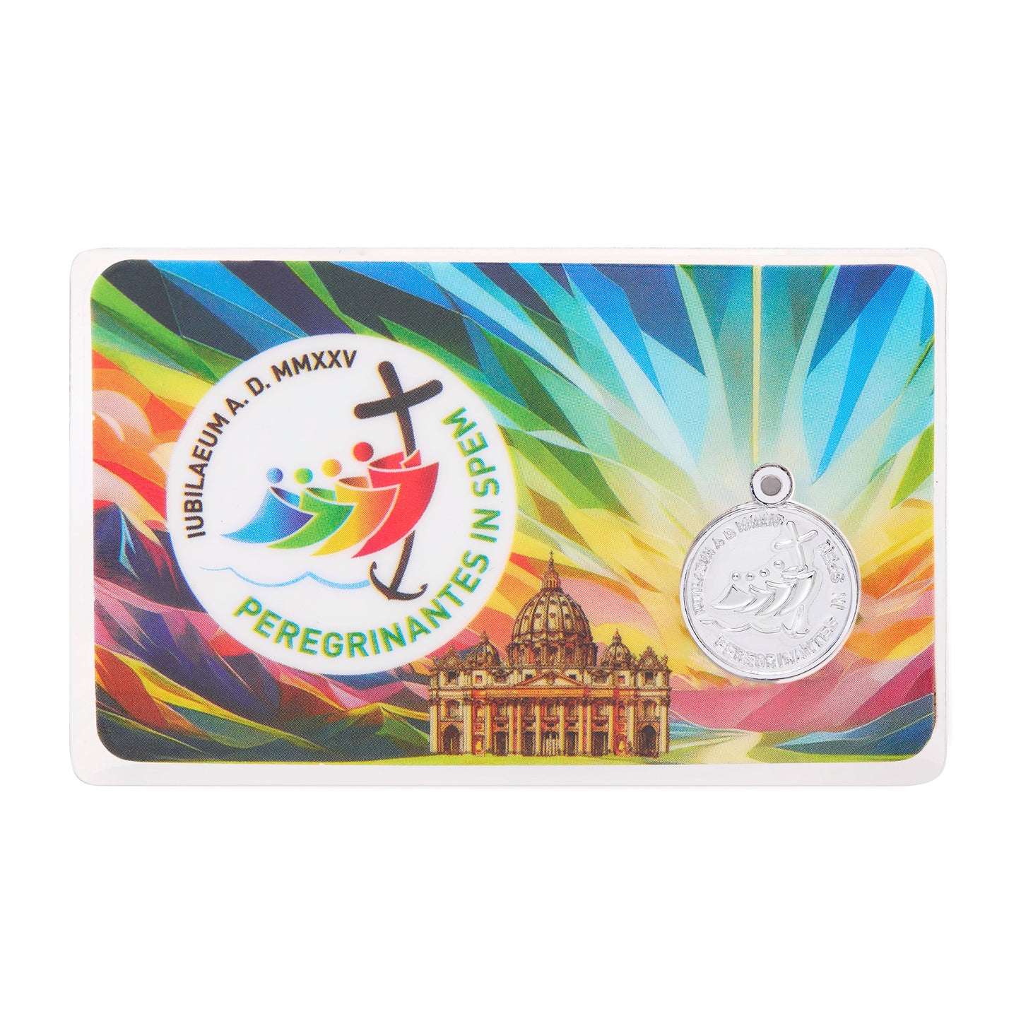 Estampa Religiosa Horizontal Plastificada Del Jubileo 2025 Con Basílica De San Pedro Y Peregrinos