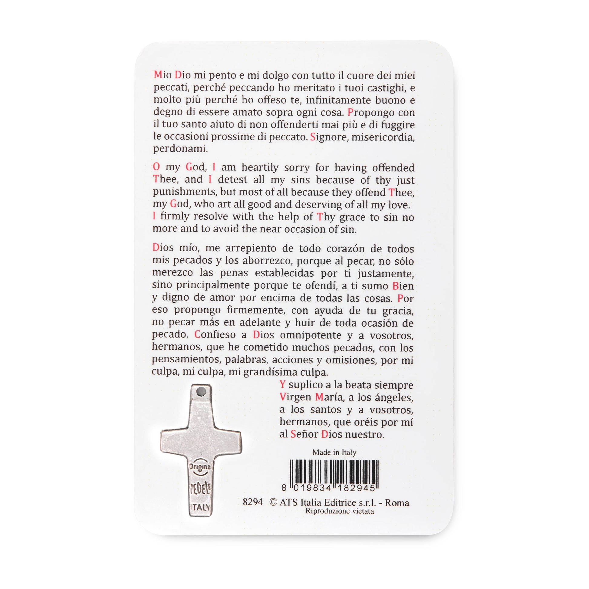 Estampa Religiosa Plastificada Con El Acto de Contrición