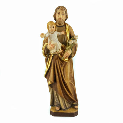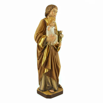 Estatua en madera de San Josè "El Hombre Justo" con Niño, entallado y pintado a mano en el Norte de Italia. Esta Escultura nos presenta San Jose el "Hombre Justo" como Padre del Hijo de Dios. El Adjectivo "Justo" se refiere a su Elección, San Josè respetò la Voluntad Divina, aceptò su rol de Padre y de Esposo Fiel a una Virgen Esposa.