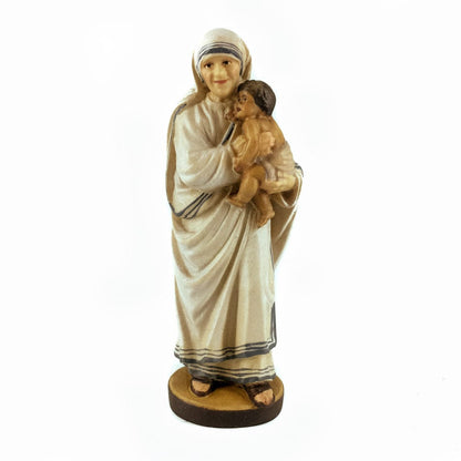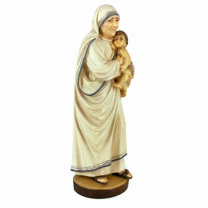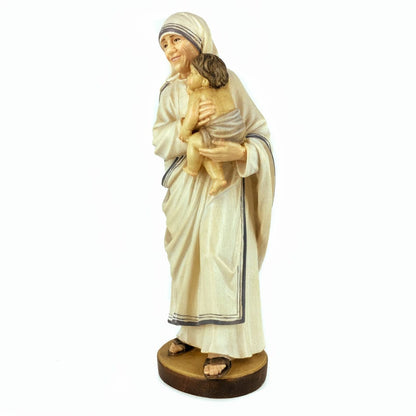 Estatua en madera de Santa Madre Teresa de Calcutta entallada a mano en el Norte de Italia. Hermosísima reproducciòn de la Santa Hermana màs amada en el Mundo: Santa Teresa de Calcuta. La Santa lleva el Sari, el vestido tradiciónal de la India.