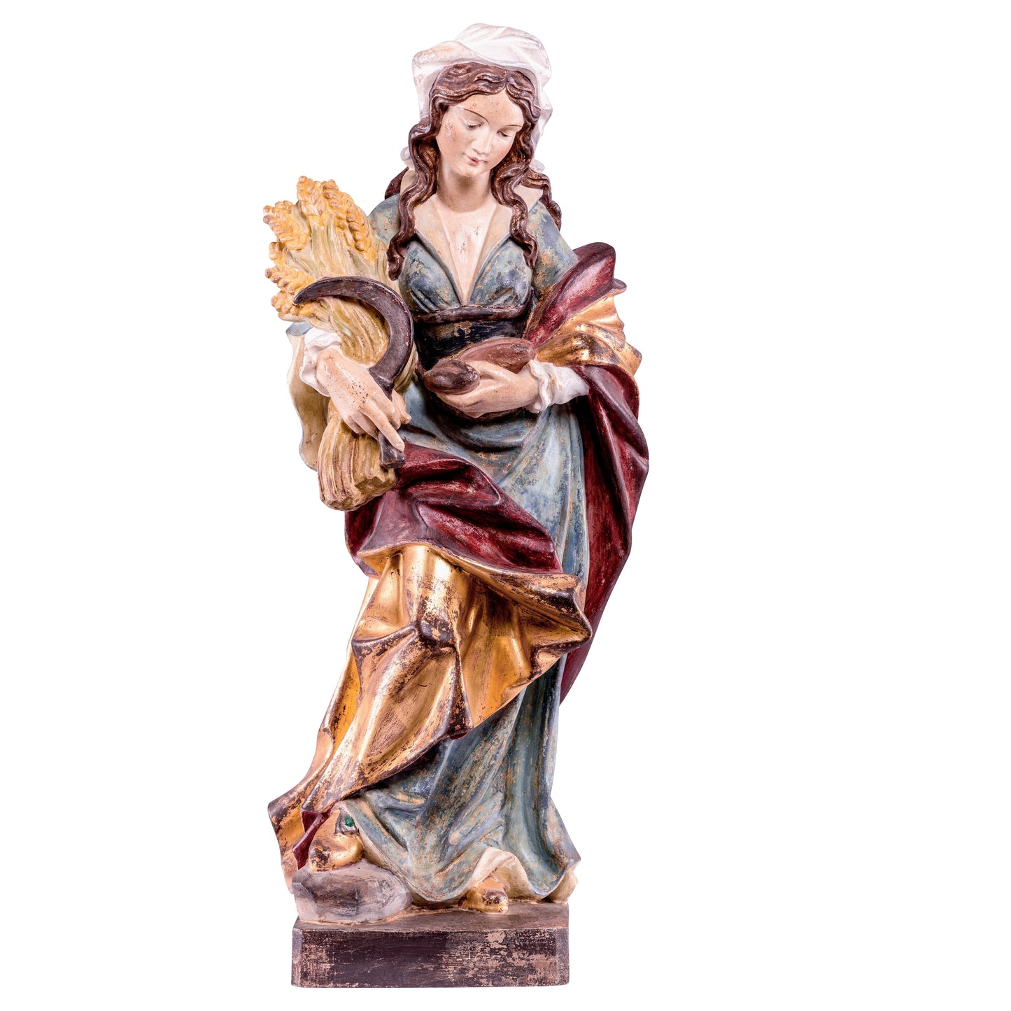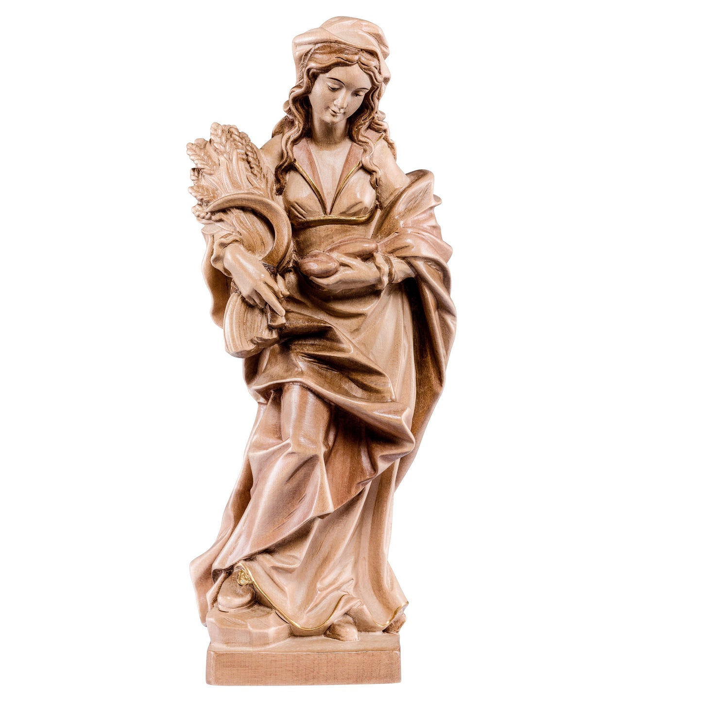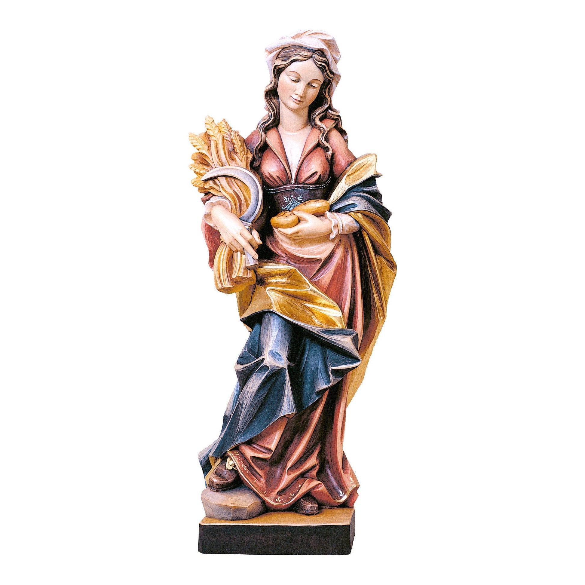 Estatua De Madera De Santa Notburga. Esta hermosa estatua fue completamente hecha a mano en Val Gardena, en la región alpina de Alto Adige, ubicada en el extremo norte de la península italiana.