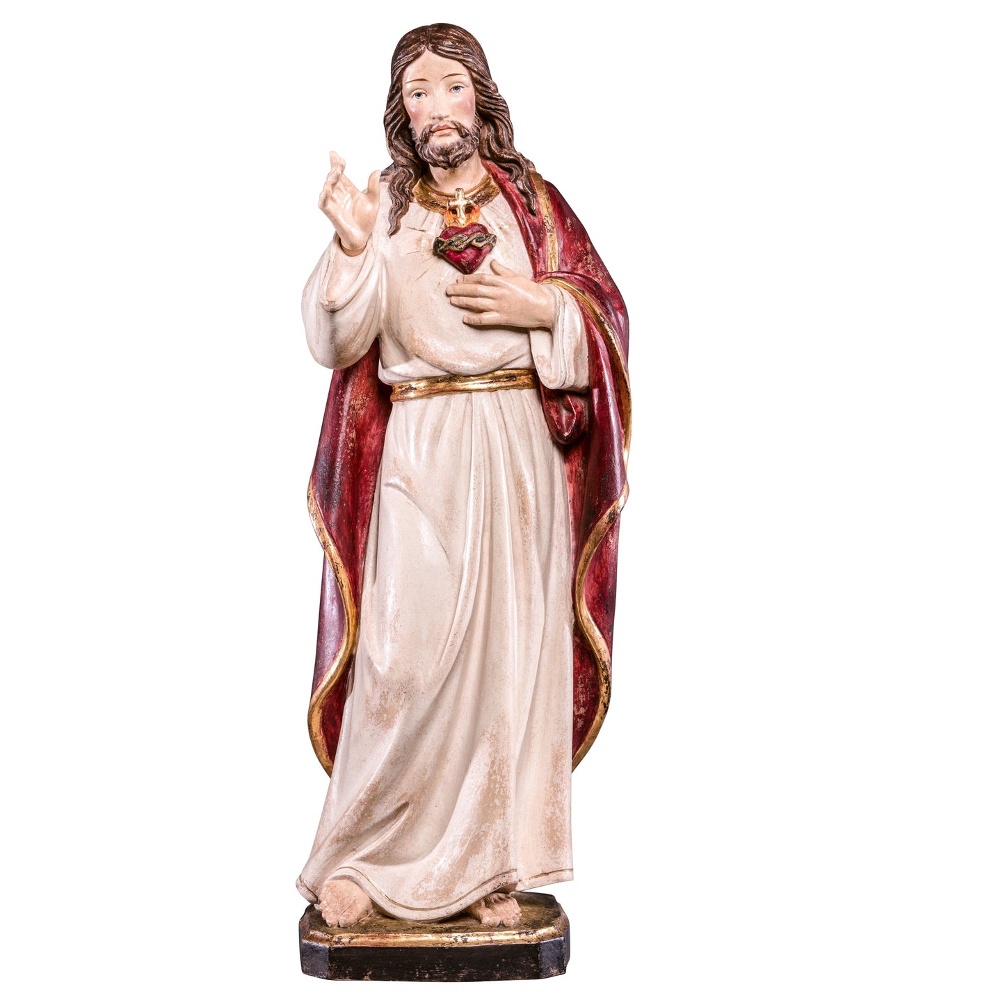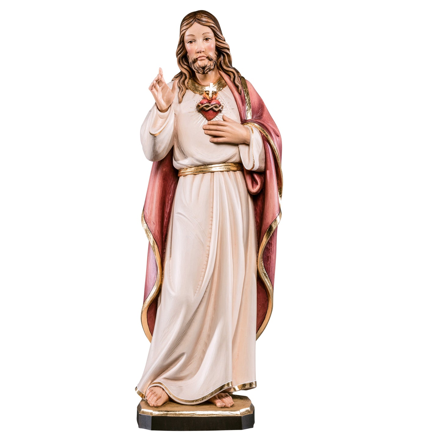 Estatua de madera Sagrado corazon de Jesús classic. Esta hermosa estatua fue completamente hecha a mano en Val Gardena, en la región alpina de Alto Adige, ubicada en el extremo norte de la península italiana.