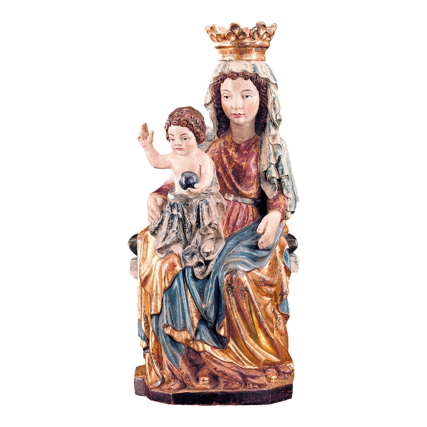 Estatua de madera Virgen de Praga. Elaborada completamente a mano en Val Gardena, esta espléndida estatua proviene del territorio alpino de Alto Adige, ubicado en la parte más septentrional de la península italiana, colindante con Austria.