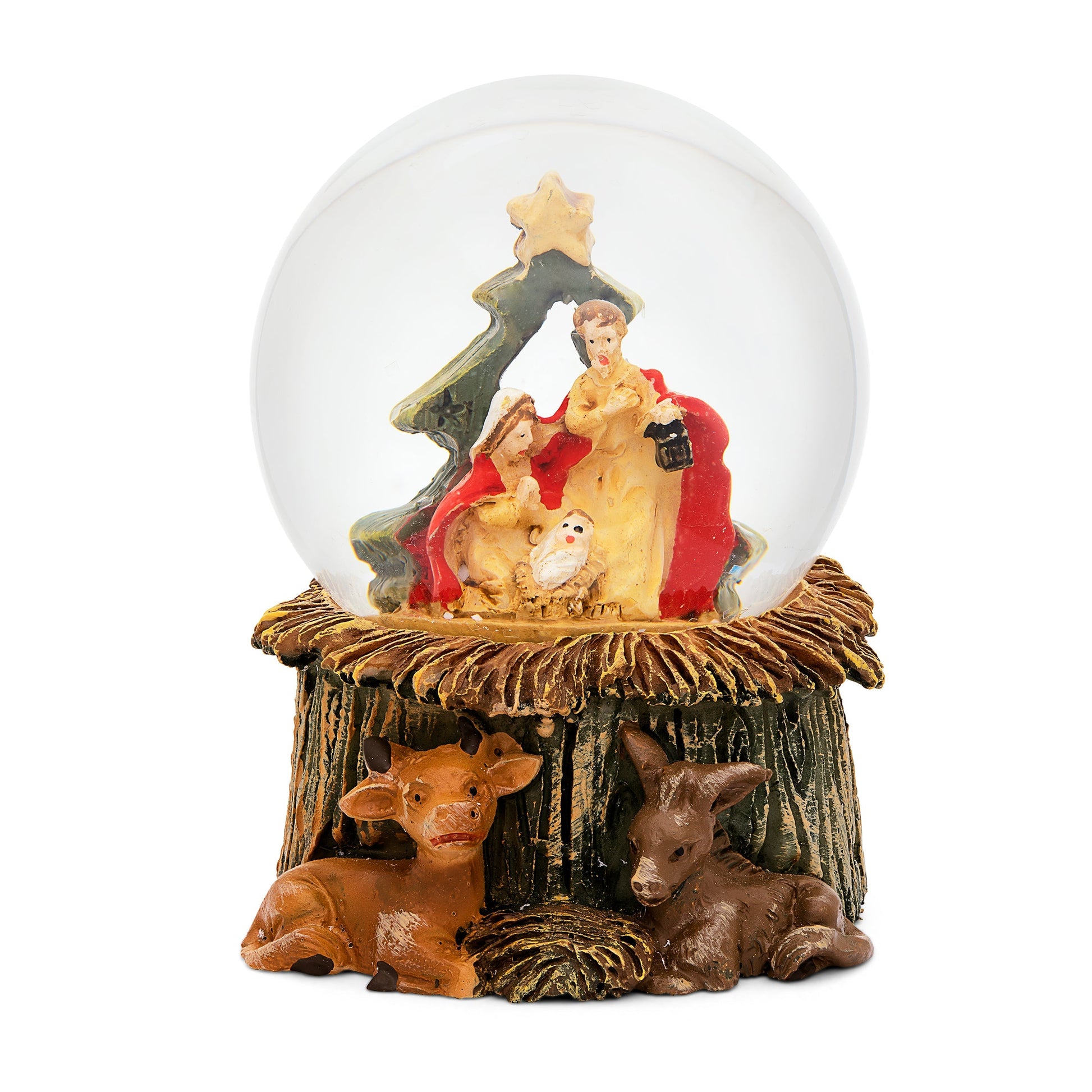 Globo De Nieve Con Belén Y Árbol De Navidad De Resina