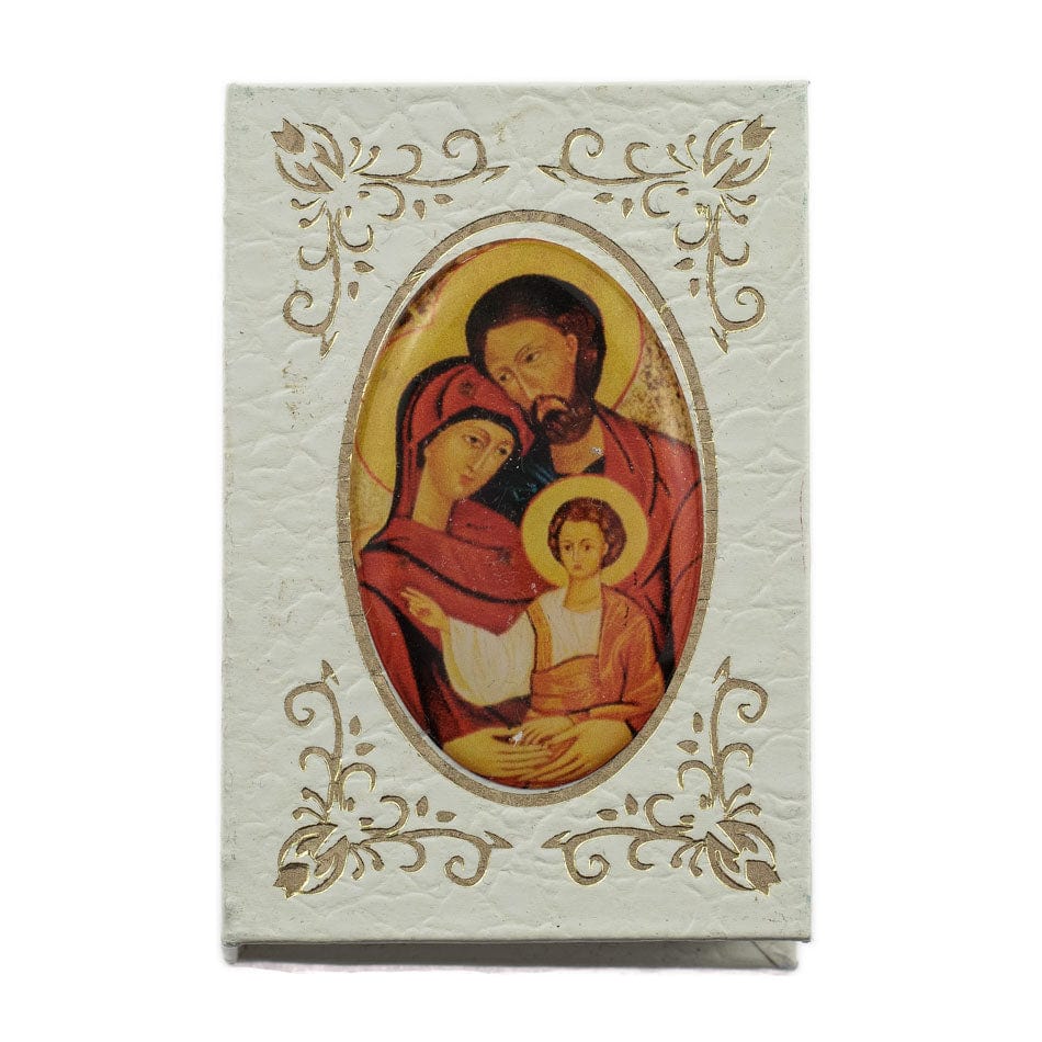 Portarosario Blanco De La Sagrada Familia Con Rosario De Madera