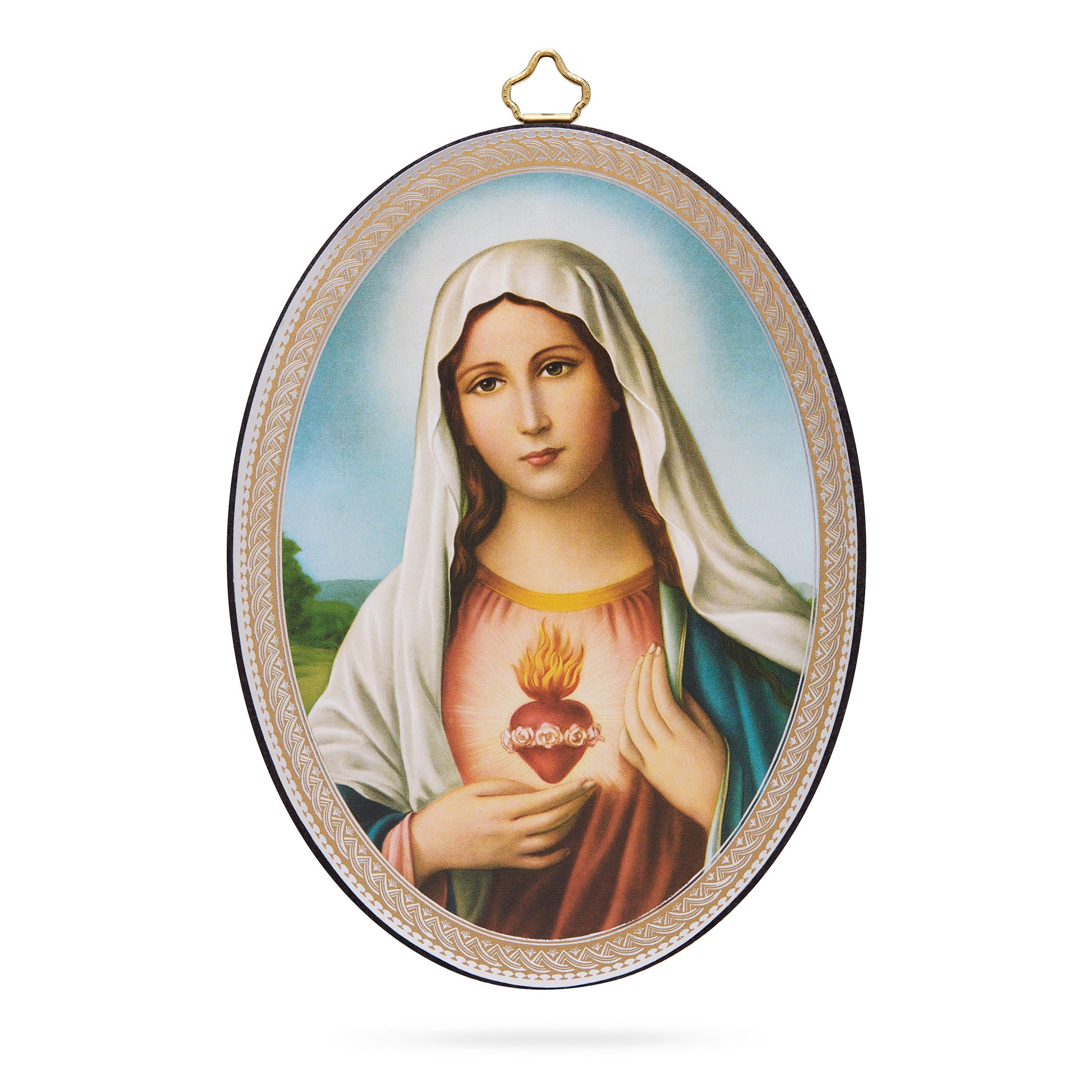 Icono Ovale De Madera Del Inmaculado Corazón De María