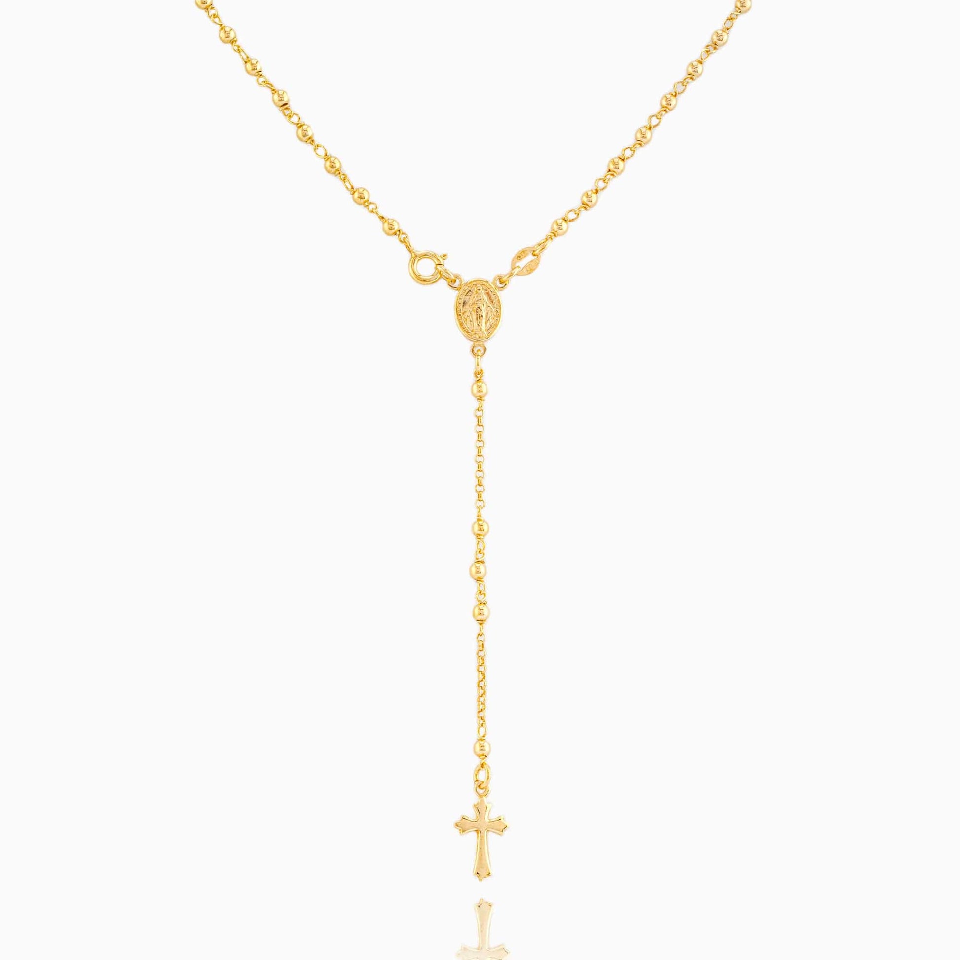 Plata de Ley 925 Cuentas de Rosario con la Medalla central que representa a Nuestra Señora de los Milagros y la Cruz. Este collar se sujeta con un cierre de langosta y cuentas de 3 mm.