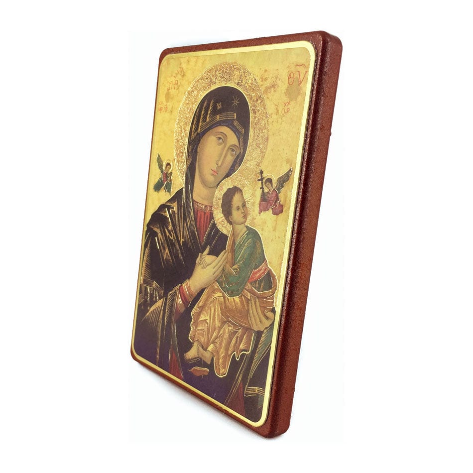 Placa de madera de Nuestra Señora del Perpetuo Socorro para la pared. Una pieza de arte atemporal, hecha a mano con los mejores materiales para un tributo duradero a la fe.