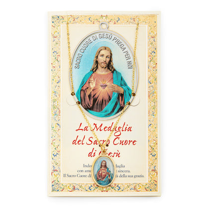 Estampita con Medalla y Cadenita del Sagrado Corazon de Jesus