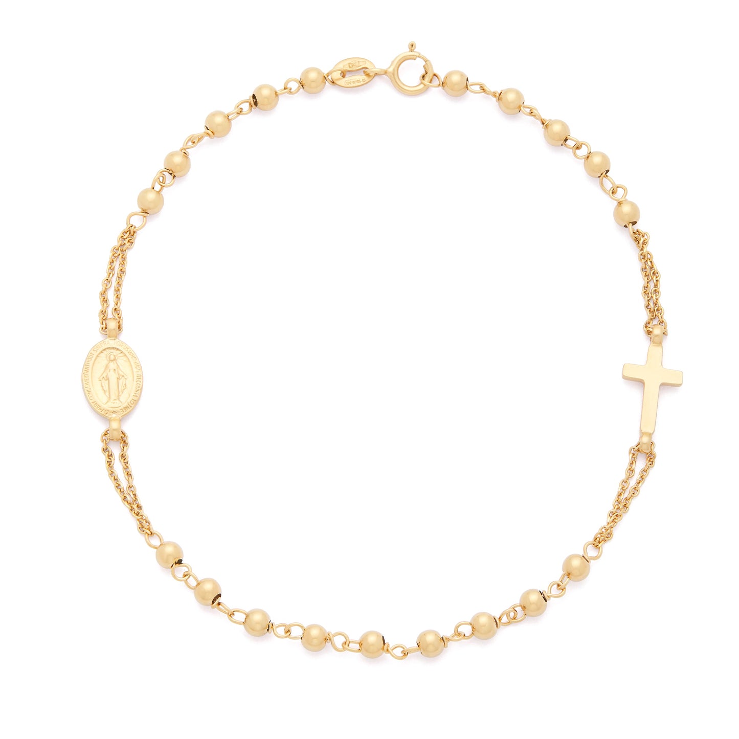 Pulsera De Oro Amarillo Con Medalla Milagrosa Y Cruz