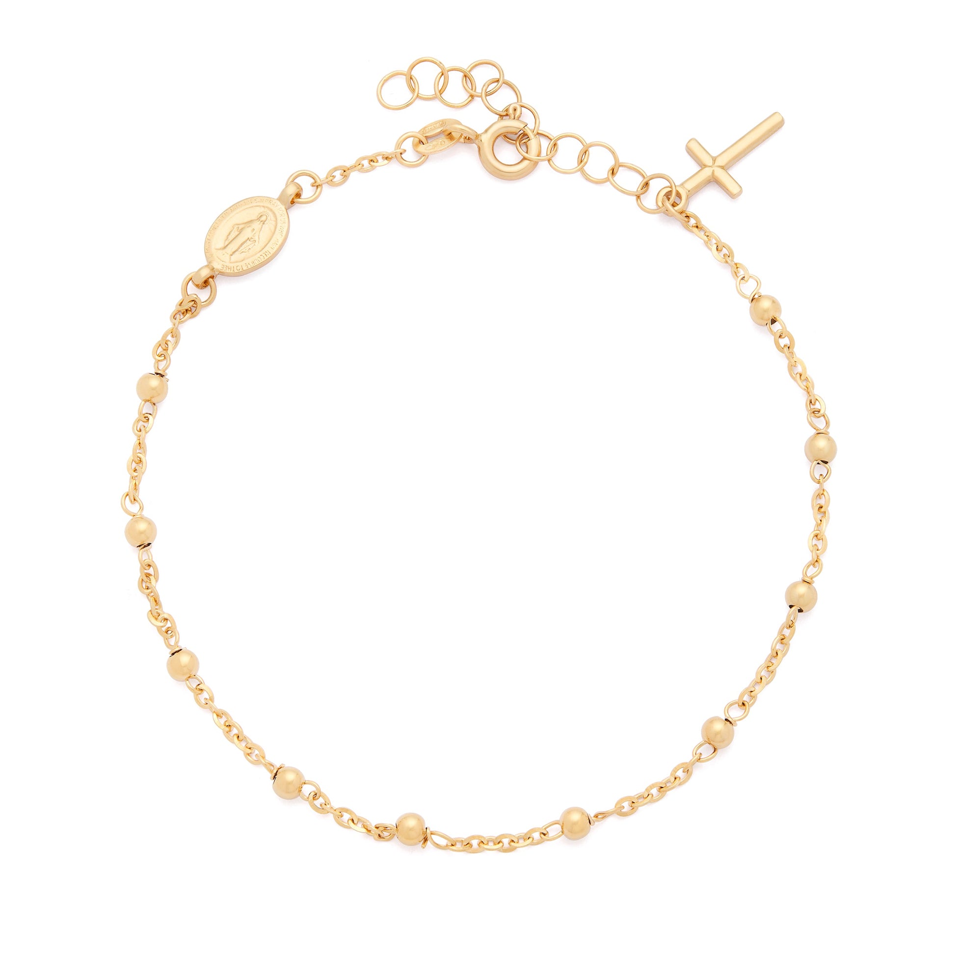 Pulsera Rosario De Oro Amarillo Con Medalla Milagrosa Y Cruz